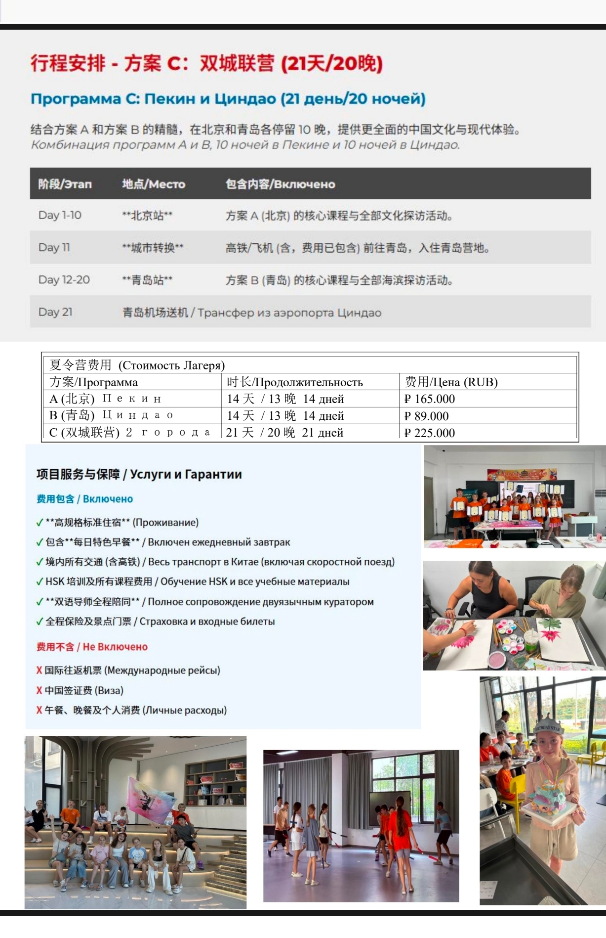 Программа включает в себя уроки китайского языка, уроки китайской культуры, экскурсии, шопинг, в Циндао пляжный отдых